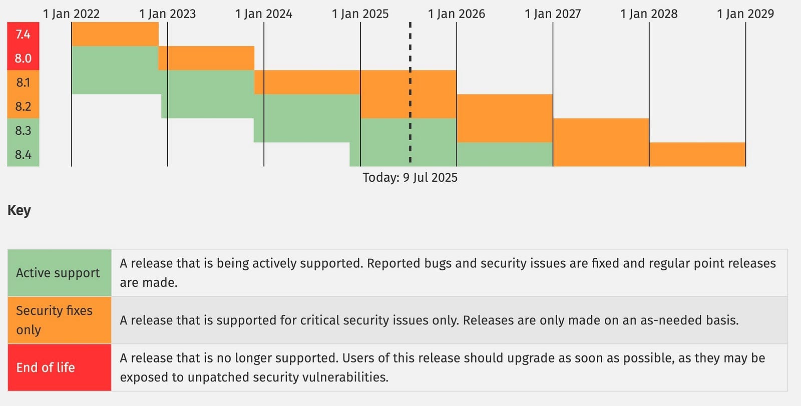 - Enhanced Security: Newer PHP versions receive regular security updates. Running an outdated version makes your site vulnerable to attacks. Below you will see PHP versions and the date they will stop receiving updates.
